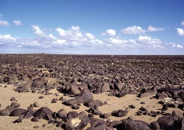 I travelled onward into the Badia region, scattered with black basalt stones, as part of a research team studying the use of antibiotics among pastoral communities. Staying with Bedouin families in their tents, I listened to stories shaped by the desert, by survival, by a culture that holds both hospitality and hardship with equal grace. At first glance, the Badia appears almost impenetrable: a sweeping expanse broken only by ancient volcanic hills that rise dark and brooding on the horizon. Millions of years ago, these volcanoes sent rivers of lava across the desert, leaving behind endless fields of black basalt stones. They stretch so widely and densely that it is said the entire population of Jordan would need 10,000 years to clear them. For travellers on foot or by vehicle, this terrain offers resistance at every turn, its silence and stillness both intimidating and mesmerising.