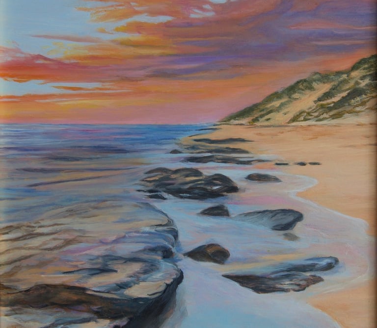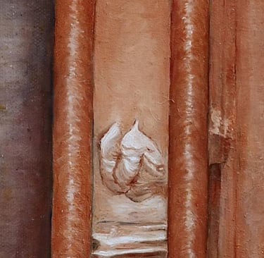"My artwork is born from a quiet devotion to nature, culture, and the luminous possibilities of oil paint. I work in the Renaissance tradition of layered glazing—thin, transparent veils of colour laid gently over a monochrome underpainting. Each layer deepens the light, allowing colours to breathe and mingle optically, building a quiet radiance that cannot be achieved in a single stroke"