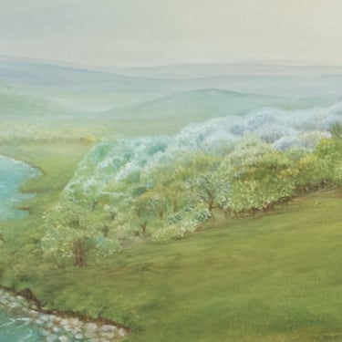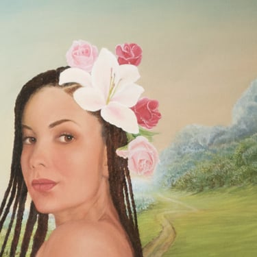 Eleonore was created as a commissioned portrait, yet she grew to embody something universal — a quiet tribute to motherhood, serenity, and the inner radiance of new life. Inspired by the atmospheric landscapes of Leonardo da Vinci, particularly the dreamlike depth behind the Mona Lisa, I shaped the background to echo that same sense of timeless mystery. A soft river winds its way into the far distance, drawing the eye gently through the landscape, while a narrow path curves along the right side of the painting, inviting the viewer to imagine where it might lead.